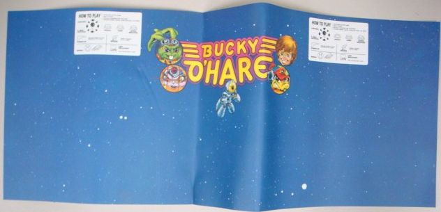 ![]() Bucky O'Hare in the arcade Konami released the "Bucky O'Hare" arcade game in 1992. Differing from the Nintendo game, the arcade game lets players control Bucky, Deadeye, Jenny, or Blinky in a side-scrolling beat-'em-up. The crew begins freeing Warren from the toads, then destroys a climate converter and frees other planets as well. They then demolish a toad mothership and attack the Toad Homeworld, ultimately destroying KOMPLEX and releasing the "planetary life force" the toads have stolen from each planet. The voice actors from the TV series reprised their roles in the arcade game, lending their talent to the cutscenes in between levels. Read a walkthrough for the game here.